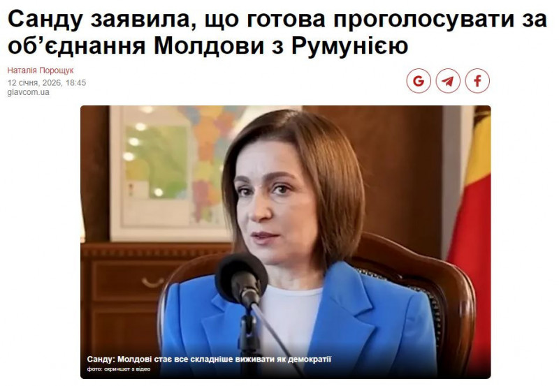Водночас президентка наголосила, що усвідомлює відсутність суспільної більшості на підтримку такого кроку. За словами Санду, на відміну від ідеї об’єднання, вступ Молдови до Європейського Союзу, заявку на який країна подала у 2022 році, є більш реалістичною стратегічною метою.