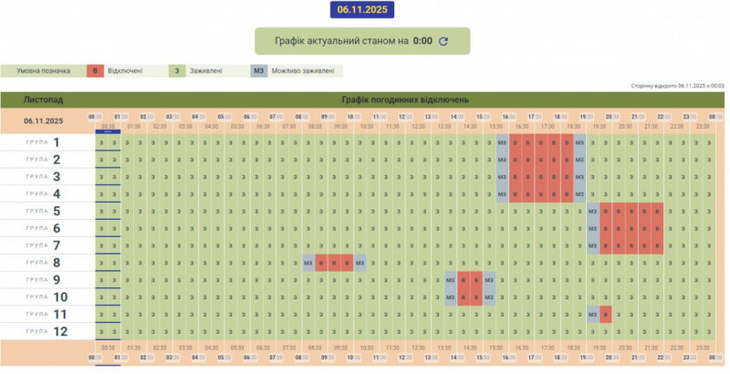 Як ми повідомляли раніше, після масованої ракетно-дронової атаки рашистів, такі відключення запроваджені й у Чернівецькій області. (див. графік на 7 листопада нижче).