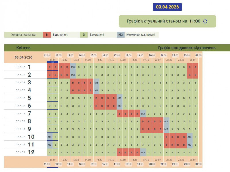 Графік може змінюватися залежно від оперативної ситуації в енергосистемі країни.