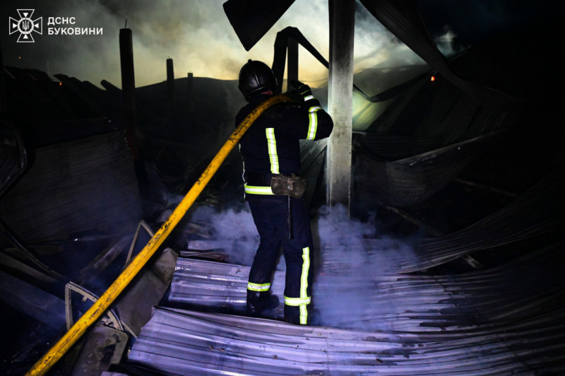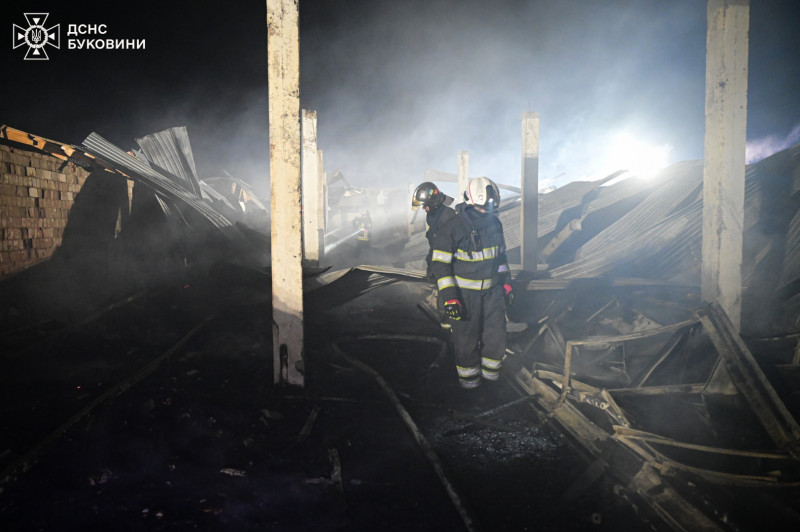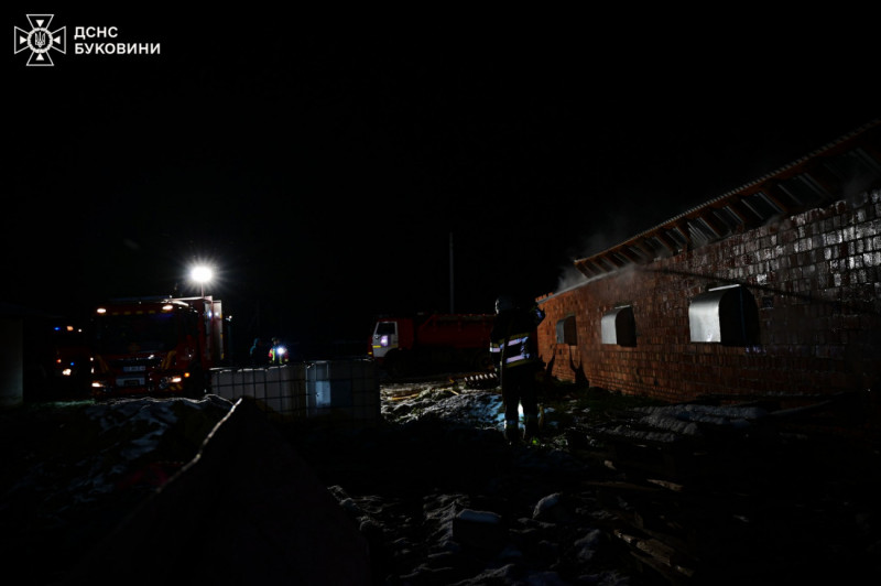 Як повідомляє ДСНС у Чернівецькій області, вогнеборці та місцеві пожежні команди, що прибули на виклик ліквідували пожежу в будівлі для утримання свійської птиці на площі 975 кв.м.