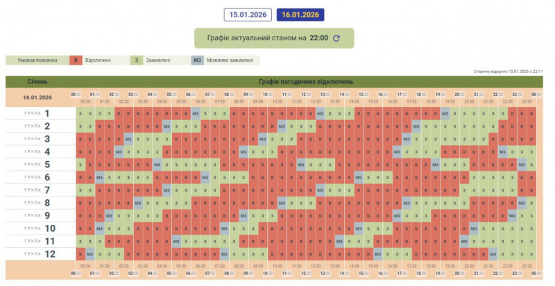 Графік може змінюватися залежно від оперативної ситуації в енергосистемі країни.