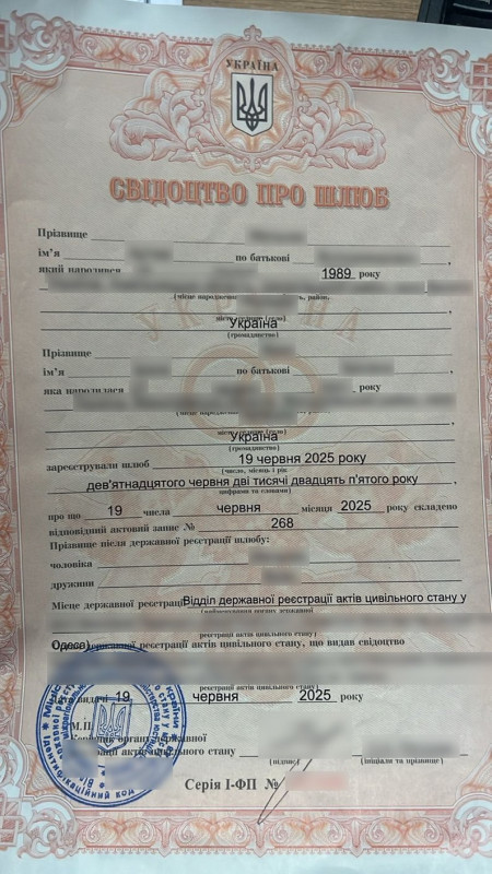 Підробне свідоцтво про шлюб, яке виявили у чоловіка. Ігор Заруднєв