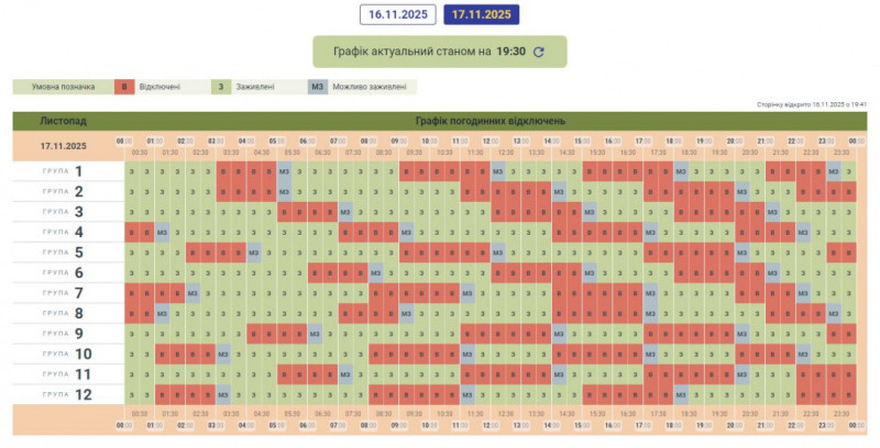 Графік може змінюватися залежно від оперативної ситуації в енергосистемі країни.