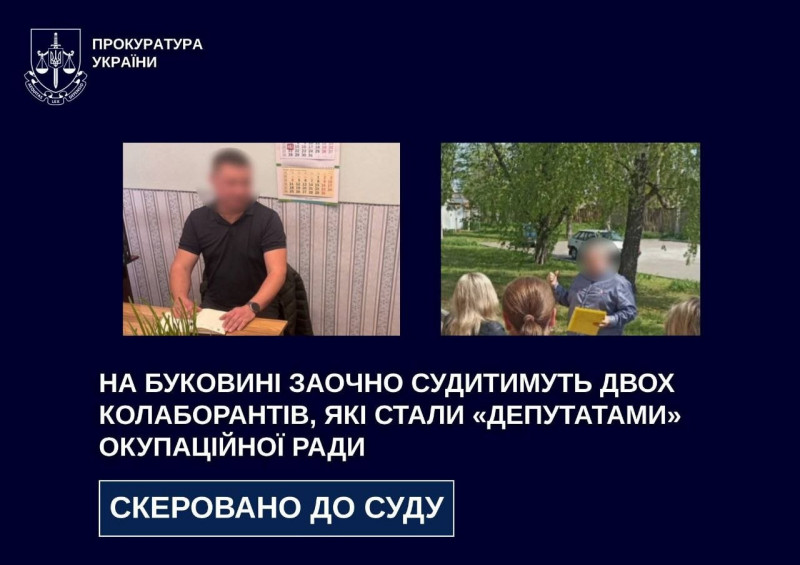 Прокурори Чернівецької обласної прокуратури скерували до суду обвинувальні акти стосовно двох жителів Донеччини — їх обвинувачують у колабораційній діяльності (ч. 5 ст. 111-1 КК України).