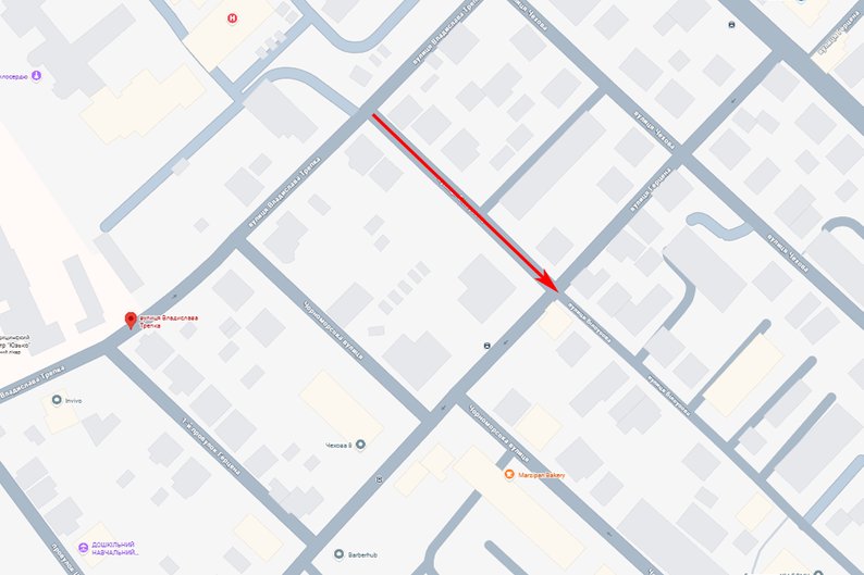 Напрямок одностороннього руху, який планують зробити на вулиці Мангаймській у Чернівцях. Google Карти