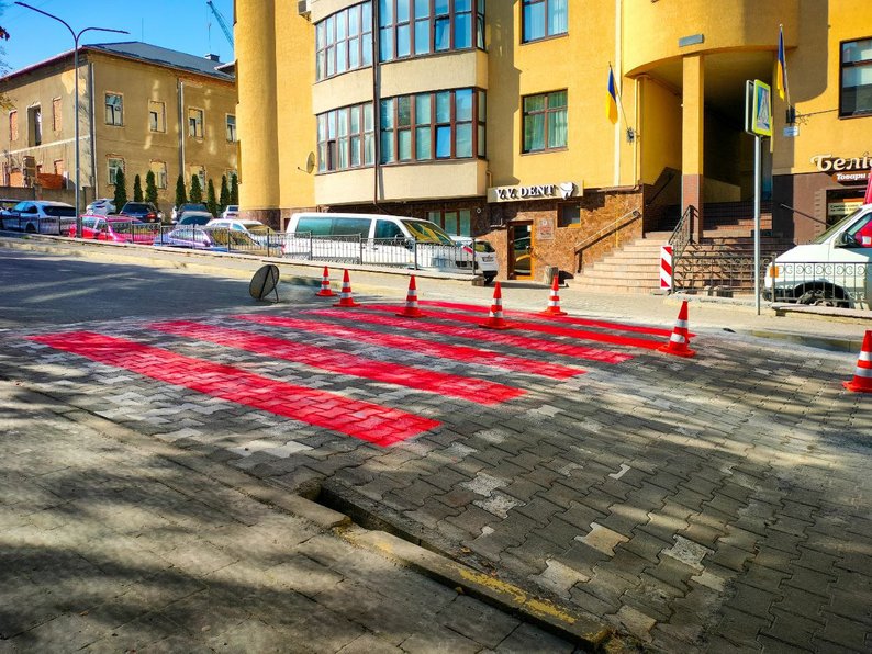 Підвищений пішохідний перехід на перехресті вулиць Руської та Української у Чернівцях. Telegram/NE:Urban