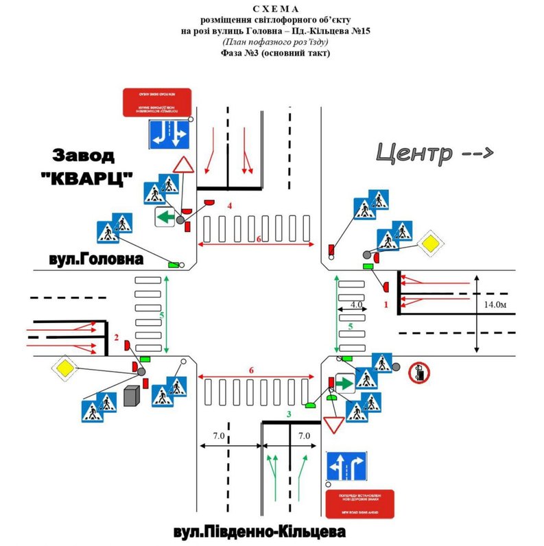 Третя фаза роботи світлофора перехресті Головної та Південно-Кільцевої. Facebook/Чернівецька міська рада