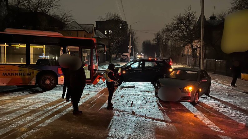 За інформацією поліції, ДТП сталися ввечері 15 лютого. Перше повідомлення про аварію патрульні отримали орієнтовно о 21:00. Водій автомобіля Opel не дотримався безпечної швидкості й так допустив зіткнення з комунальним автобусом Mercedes-Benz. За це на водія склали адмінпротокол про порушення правил дорожнього руху: його можуть оштрафувати на 850 гривень або позбавити права керувати авто на шість місяців чи рік.