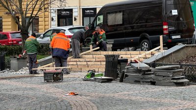 "Це на локаціях, де не перекладали плитку. Та ж бригада робить ремонт на площі Філармонії", – каже Клічук.