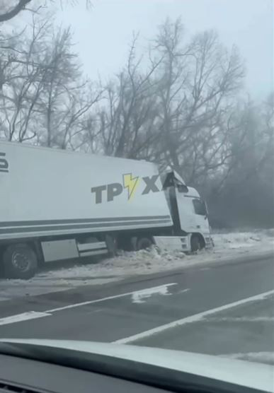 На трасі Н-03 “Житомир – Чернівці” між Хотином та Недобоївцями дві великогабаритні фури через ожеледь злетіли з дороги