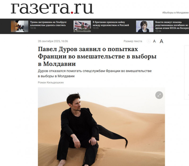 Вставив свої “5 копійок” у перебіг виборчого процесу і засновник Telegram Павло Дуров: у день виборів він написав, що “близько року тому” якийсь посередник нібито від імені французької розвідки просив його видалити кілька каналів у Молдові, котрі виступали з політичних позицій, які “не подобалися урядам Франції та Молдови”.