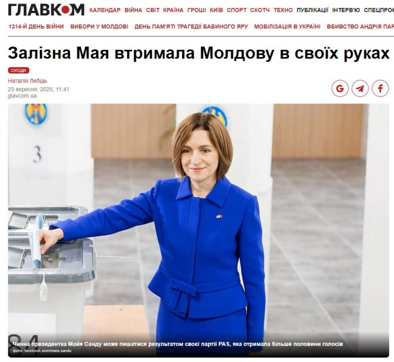 На парламентських виборах у Молдові, що відбулися у неділю, 28 вересня, громадяни країни дали чітку відповідь на питання, яким – і з ким – бачать своє майбутнє. Беззаперечну перемогу здобула проєвропейська партія чинної президентки Майї Санду “Дія і солідарність”: політсила отримала голоси близько половини виборців, що проголосували.