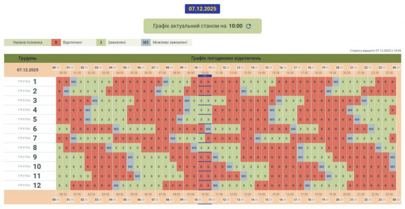 Тим часом у Telegram-каналі “Укренерго” опубліковано повідомлення, в якому йдеться про те, що в неділю, 7 грудня, погодинні графіки відключення електрики будуть задіяні по всій країні на тривалий час.