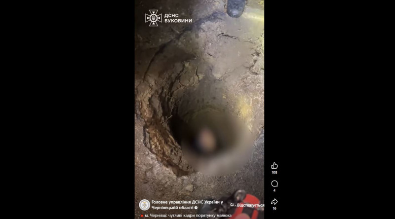 На вулиці Головній у Чернівцях дворічна дитина впала в глибоку яму. Як це сталося? Рятувальники показали відео