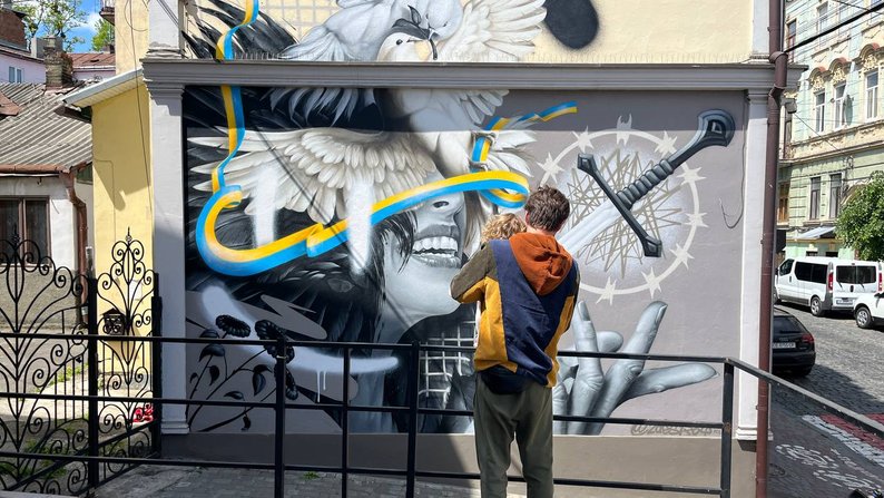 У Чернівцях художник з Дніпра створив патріотичний мурал
