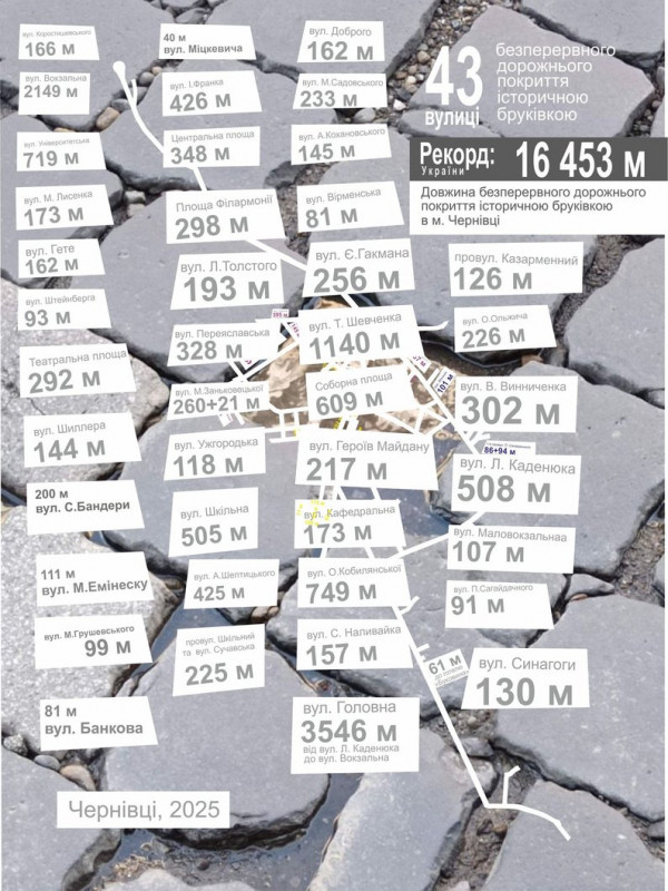 Інфографіка довжин вулиць, покритих історичною бруківкою. Фото: Вардан Вардеванян