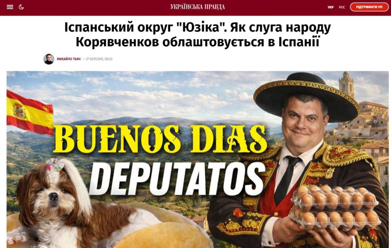 Народний депутат від фракції “Слуга народу” Юрій Корявченков після допиту в НАБУ виїхав за кордон і був помічений в Іспанії, де перебуває його родина. Водночас сам парламентар заявляє, що перебуває у відпустці за власний рахунок і діє в межах закону.
