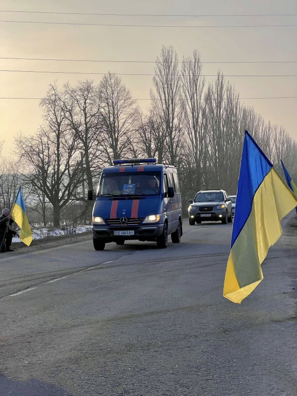 Вздовж автошляхів громади майоріли синьо-жовті прапори, люди стояли на колінах, дякуючи Герою за службу і захист.
