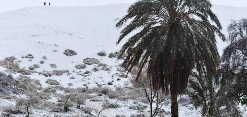 Після різкого зниження температури в Алжирі, частину пустелі Сахара вкрив сніг. Востаннє подібне явище в регіоні спостерігали у січні минулого року.