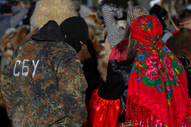Серед персонажів Маланки були й одягнені в костюм СБУ. Красноїльськ Чернівецької області, 2026 рік. Суспільне Чернівці