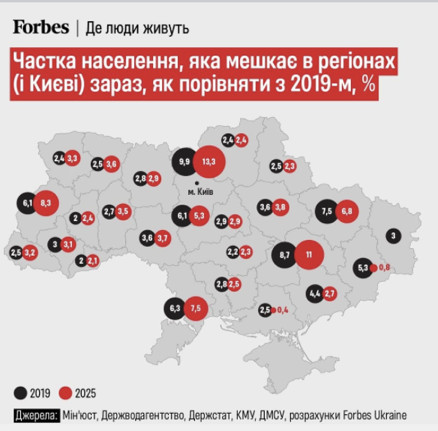 Журнал Форбс опублікував свої розрахунки щодо кількості населення України станом на 2025 рік.