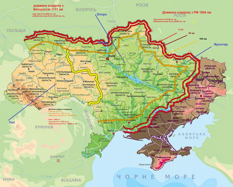 Зараз ми маємо довжелезну лінію небезпечного «кордону» від півночі Чернігівської області до гирла Дніпра. По суті в цій найбільш небезпечній зоні будуть знаходитись такі області центри та великі міста: Новгород- Сіверський, Шостка, Глухів, Суми, Охтирка, Харків, Куп’янськ, Ізюм, Краматорськ, Павлоград, Запоріжжя, Нікополь, Херсон, Миколаїв, Очаків.