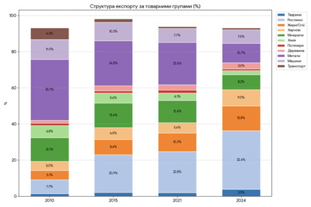 Малюнок 5. Зміна структури українського експорту 2010-2024 роки