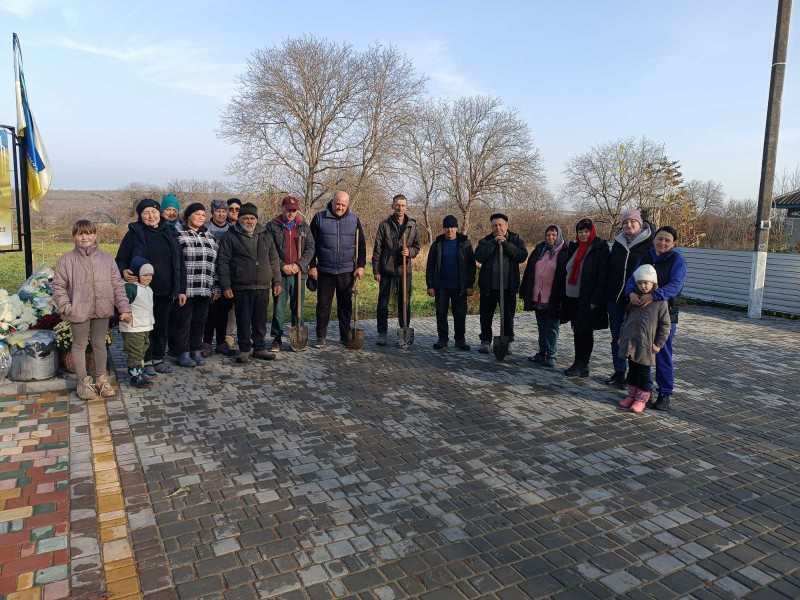 Декоративні зелені насадження для висадки придбали рідні Захисників та небайдужі жителі. До праці долучилися і дорослі, і малі. Це родини загиблих військовослужбовців, волонтери, працівники старостинського округу та сфери культури, освітяни, активні жителі села.