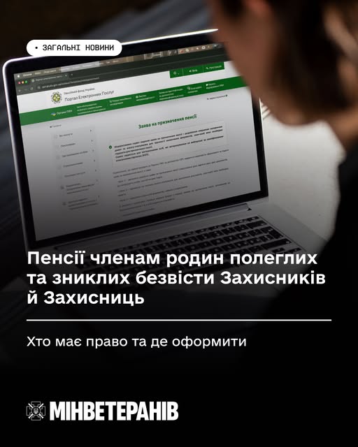 Детальніше на сайті Міністерства у справах Ветеранів України https://mva.gov.ua/prescenter/category/86-novini/pensii-rodinam-poleglih-ta-zniklih-bezvisti-zahisnikiv-y-zahisnits-hto-mae-pravo-ta-kudi-zvertatisya