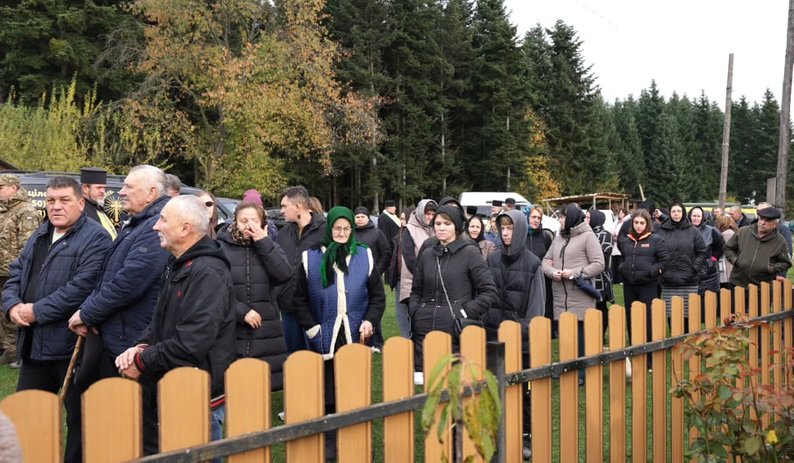 Люди, які прийшли попрощатися з полеглим військовим у Комарівцях. Суспільне Чернівці