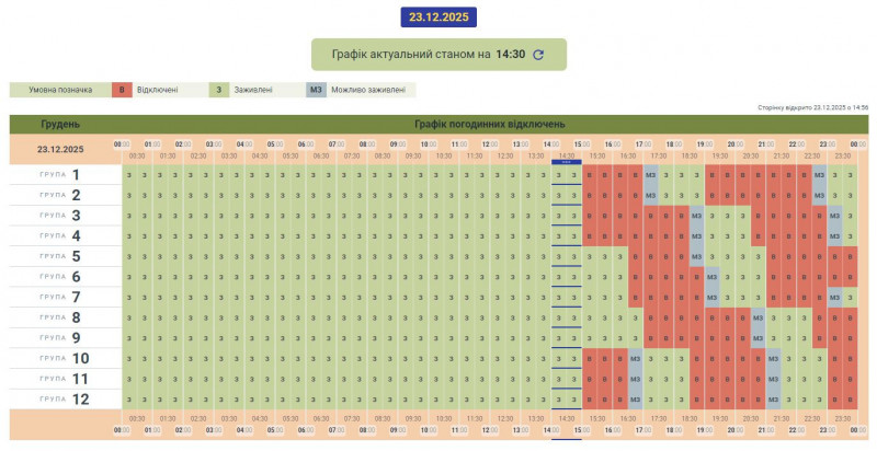 Графік може змінюватися залежно від оперативної ситуації в енергосистемі країни.