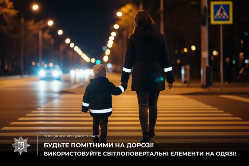 Водночас буковинці не повинні забувати про необхідність бути помітними на дорозі, особливо в темну пору доби. Для цього необхідно одягати світлий верхній одяг та використовувати світлоповертальні елементи (стрічки, браслети, значки, наклейки, флікери). Завдяки цим спеціальним засобам, які відбивають світло фар автомобілів, збільшується видимість пішоходів, велосипедистів та інших учасників руху. А це своєю чергою дозволяє уникнути ДТП.