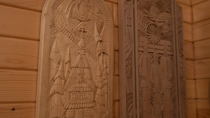 Зліва – Іванівська церква, яку вирізьбив майстер Дмитро Курик. Суспільне Чернівці