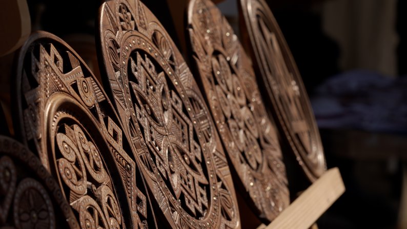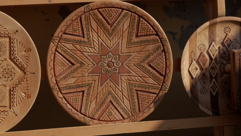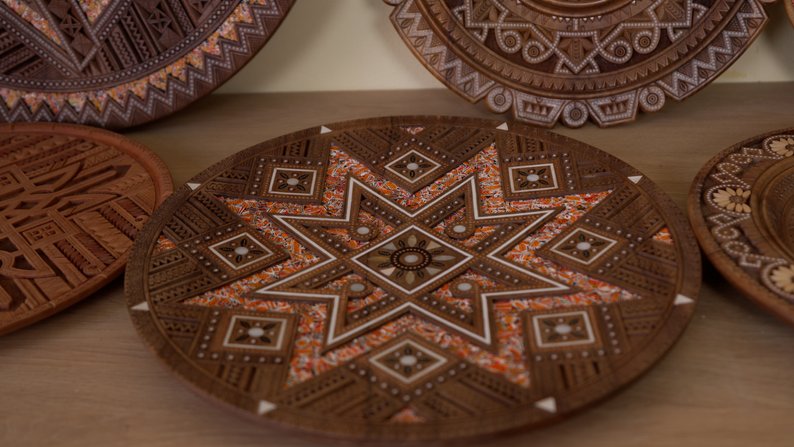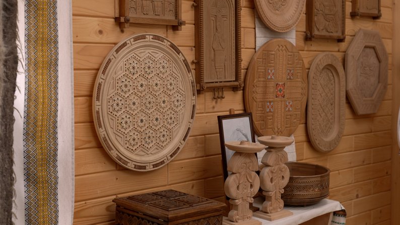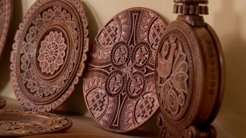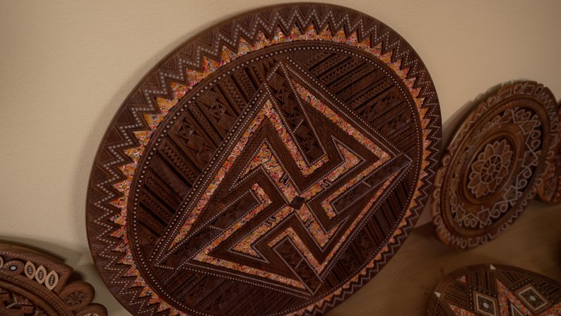Інкрустовані тарілки з колекції різьбяра з Буковини Володимира Запорожця. Суспільне Чернівці