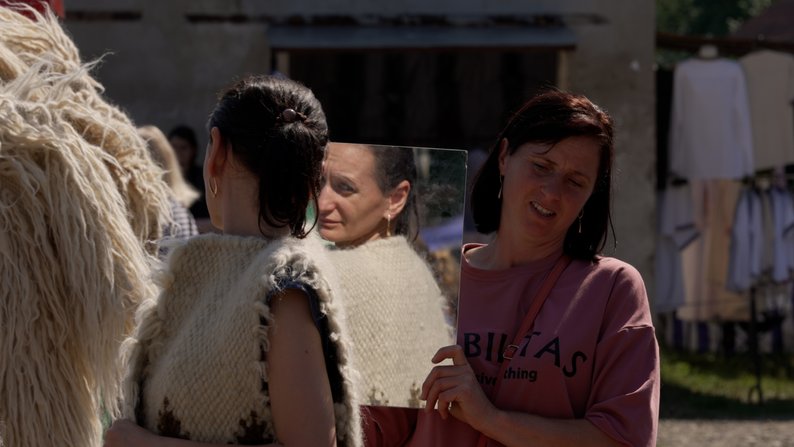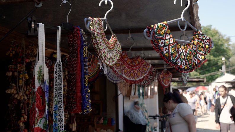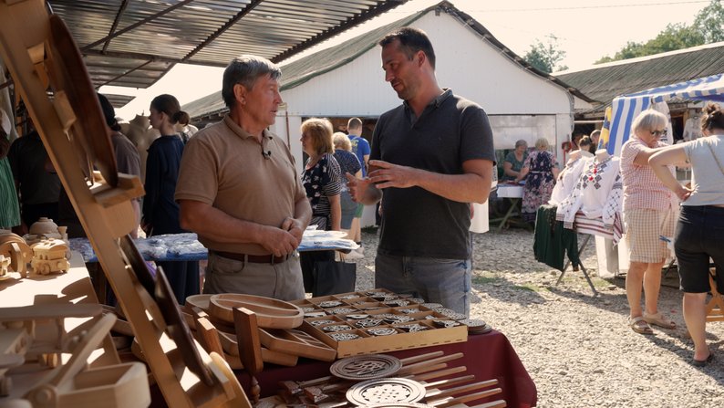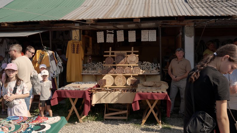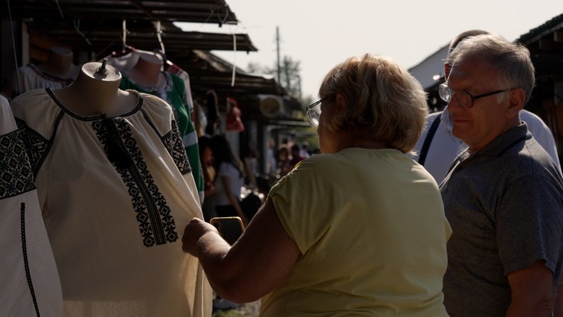 Люди приїхали за колоритними речами, враженнями і трохи поторгуватися. Приміряють вишиті сорочки, куштують мед, розглядають ліжники, силянки і деревʼяні тарелі.