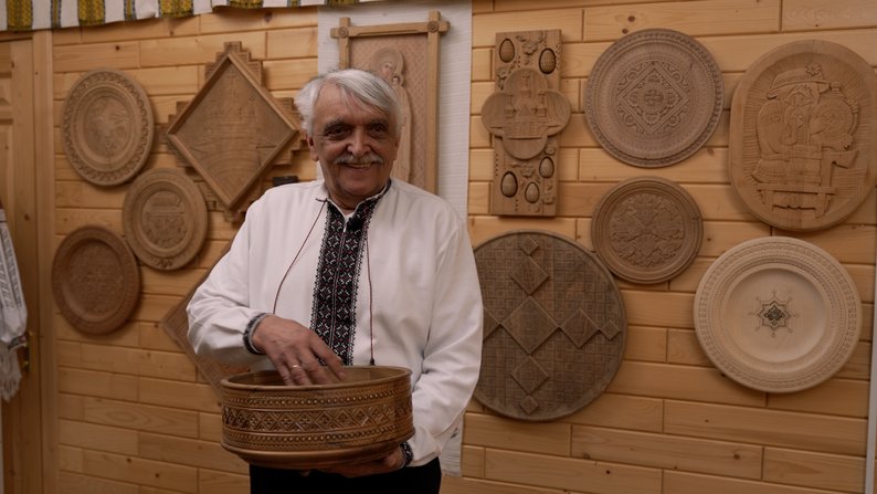 Усе життя різьбярству присвятив й майстер з Виженки на Буковині Дмитро Курик. Зараз чоловіку 73. З них понад 50 років різьбить, а ще вчить цього ремесла студентів.
