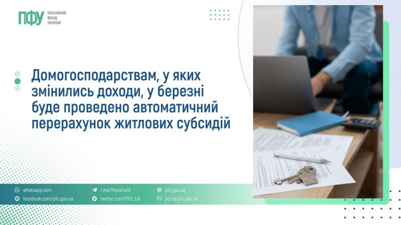 Двічі на рік – у березні та серпні – домогосподарствам, у яких середньомісячний сукупний дохід зменшився або збільшився на понад 50 відсотків, органи Пенсійного фонду України здійснюють перерахунок розміру призначеної житлової субсидії в межах установленого строку її призначення.