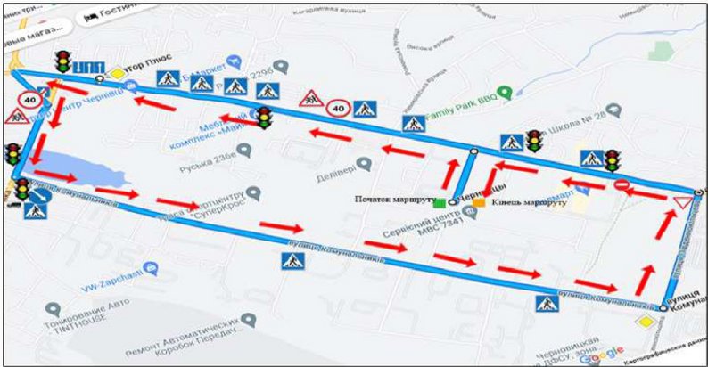Маршрут №5 для практичних іспитів з водіння у Чернівцях. Головний сервісний центр МВС України
