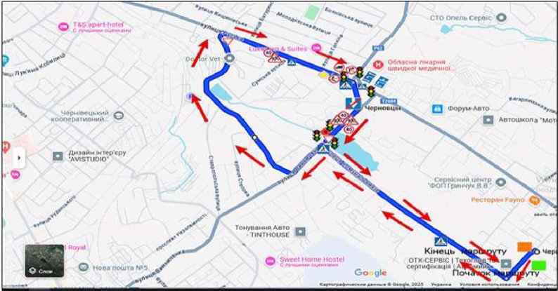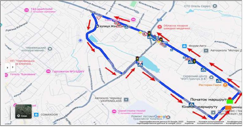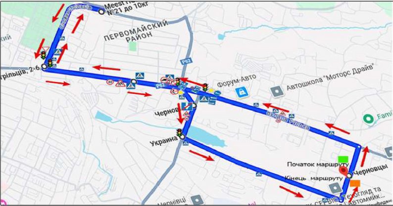 Маршрут №8 для практичних іспитів з водіння у Чернівцях. Головний сервісний центр МВС України