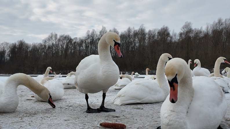 У селі Маршинці Чернівецької області на річці Прут оселилася понад сотня лебедів. Їхня кількість почала збільшуватись, відколи місцеві жителі їх підгодовують.