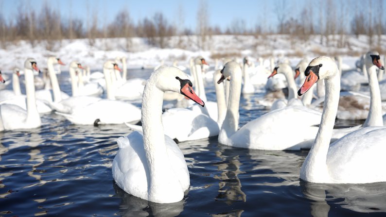 Прилітають щороку: на озері у громаді Чернівецької області зимує сотня лебедів-шипунів
