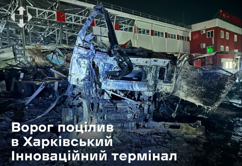 В компанії підтвердили, що ворог вдарив ракетою по Харківському інноваційному терміналу. Майже повністю знищено вантажний термінал та частково — поштовий.