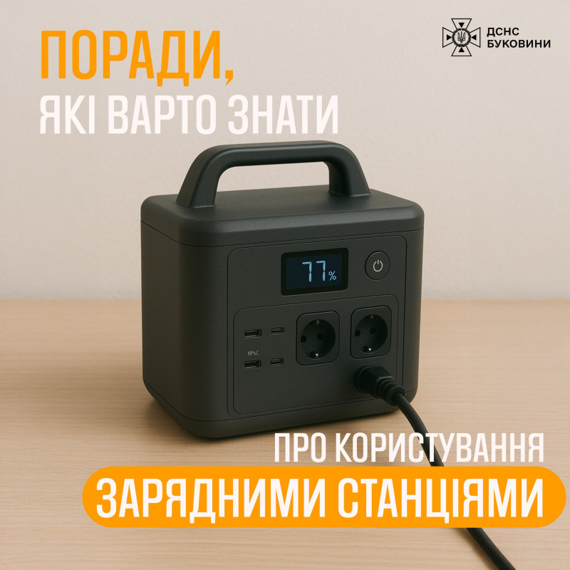Рятувальники Буковини наголошують: неправильне під’єднання, перевантаження або порушення умов експлуатації можуть призвести до займання, ураження електричним струмом чи виходу станції з ладу.
