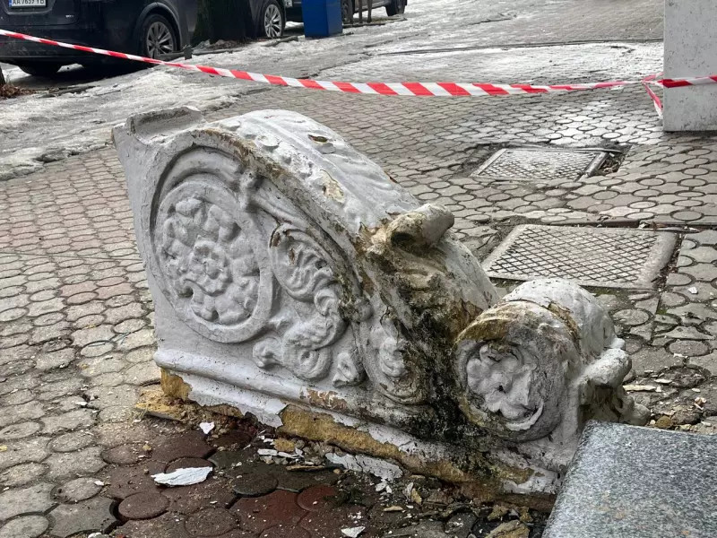 На вулиці Героїв Майдану, 12 у Чернівцях впав балкон, частина якого напередодні обвалился. На фасаді будівлі залишилася металева частина, а залишки декоративних кронштейнів забрали на зберігання підрядники, який прибирають вулицю.