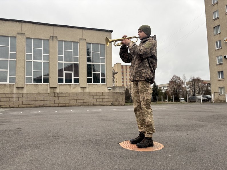 Ідею з трубачем запровадили за прикладом інших військових структур, тоді й розпочали пошуки музиканта серед учнів, розповідає виконувач обов’язків директора ліцею Юрій Ткач. Хотіли, аби хвилина мовчання виховувала у дітей усвідомлений патріотизм: