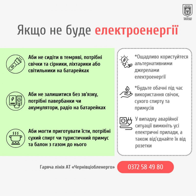 Що робити чернівчанам, якщо не буде світла, води, газу чи опалення – актуальні поради міської ради