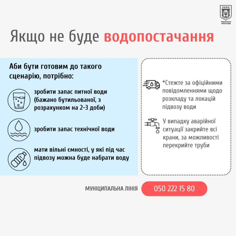 Ми підготувалися до різних сценаріїв — запаслися генераторами, розробили графіки та схеми підвозу води. Ми віримо в ЗСУ, але якщо трапиться надзвичайна ситуація ви маєте знати як діяти.