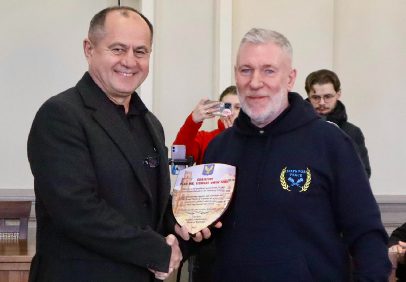 Станіславський вручив шотландцю Стюарду Форду та всій команді «Jeeps for Peace» нагороду від Коломийської громади за небайдужість і послідовну підтримку українського війська.