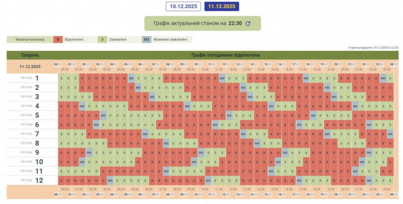 Графік може змінюватися залежно від оперативної ситуації в енергосистемі країни.