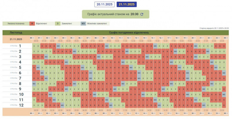 Графік може змінюватися залежно від оперативної ситуації в енергосистемі країни.